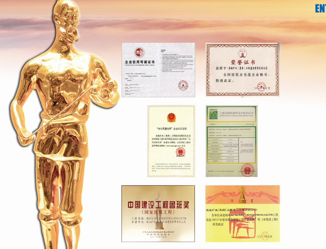 公司通過了ISO9001質量、ISO14001環境、ISO45001職業健康安全管理體系認證,建立和執行嚴格的企業工程施工工藝標準和安全質量標準,承建工程獲中國建設工程“魯班獎”1項、煤炭行業“太陽杯”獎5項、煤炭行業建設工程質量經典工程2項、華東地區“華東杯”獎1項、安徽省“黃山杯”獎13項、“全國AAA級安全文明標準化工地”1項、“省級建筑施工安全質量標準化示范工地”9項等各級榮譽。